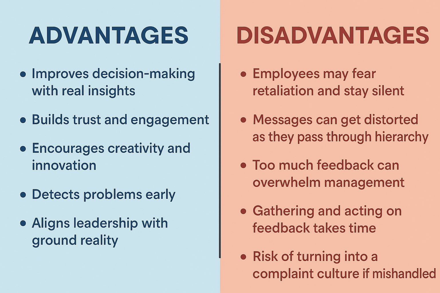 Aligns leadership with ground reality | Risk of turning into a complaint culture if mishandled |