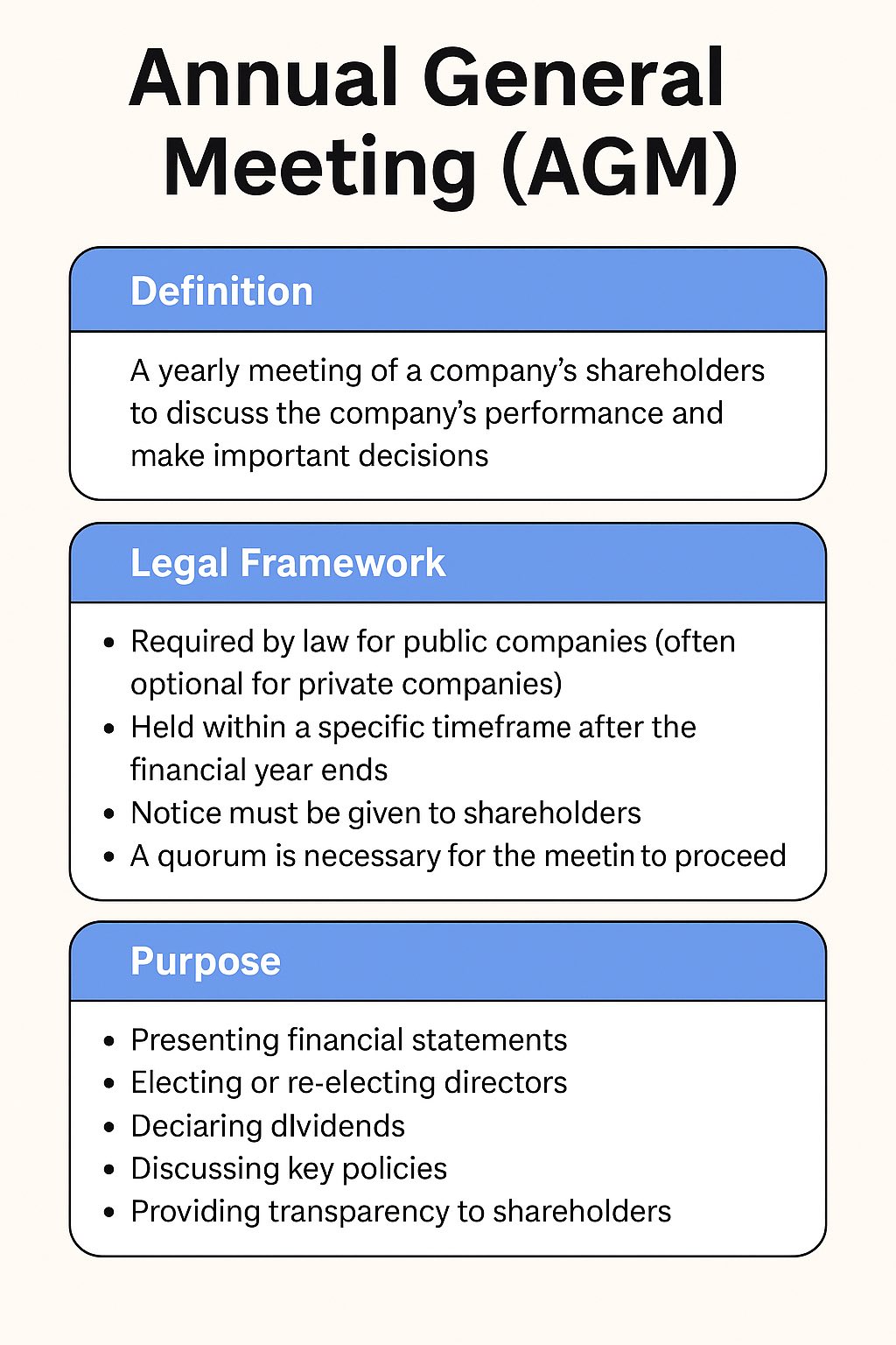 Why does it matter so much? Unlike ordinary staff meetings where team progress is discussed, an AGM is where the company reveals its performance, takes critical decisions, and allows shareholders to raise questions. It is a meeting of accountability, transparency, and sometimes drama. Imagine an AGM of a famous tech company where shareholders argue about executive pay. That is how serious these meetings can get.