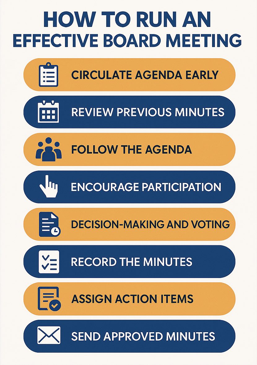 Board meetings are not just a box to tick. They are the powerhouse of governance, the stage where directors shape the company’s destiny. Running them effectively requires preparation, structure, active participation, and careful follow-up.