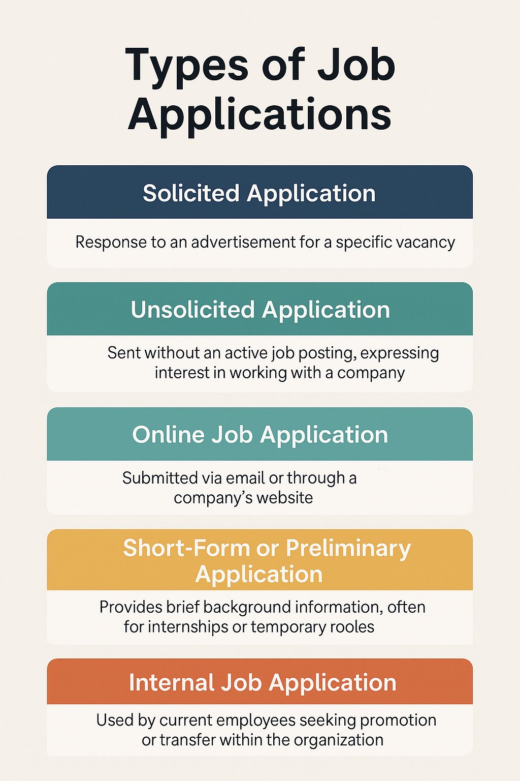 Job applications can be classified based on how and where they are sent. Understanding the types helps you choose the right tone and approach.