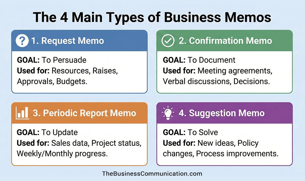 In this guide, we will break down the four main functional types of memos. We will explore their specific purposes, the tones they require, and how you can master each one to become a better communicator.